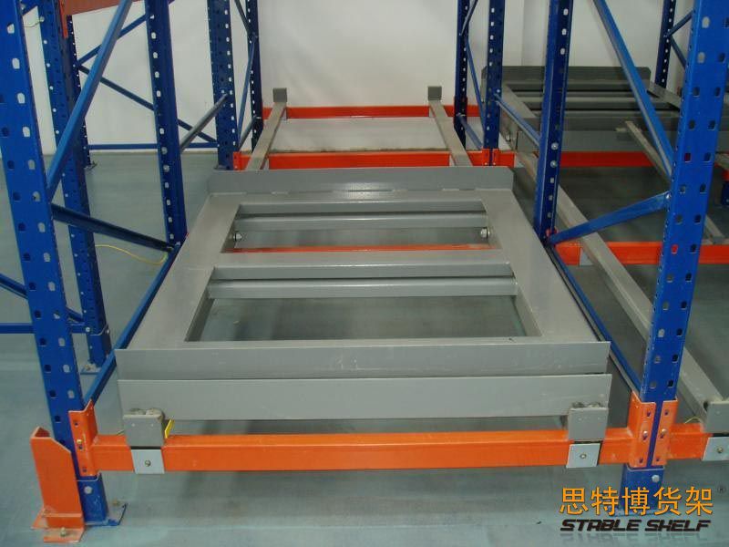 4, compared with the beam shelf space utilization can save 1/3, increase the storage density, can use general forklift access, items will automatically slide to the front storage;